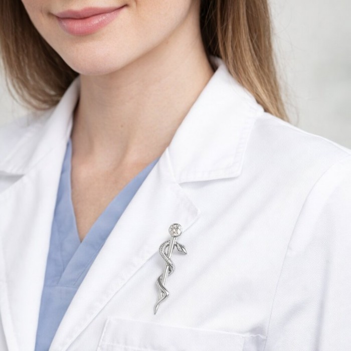 Rodowana powierzchnia zapewnia broszce dodatkową ochronę i nadaje jej elegancki, nowoczesny wygląd. Ta broszka nie tylko dodaje elegancji, ale także wyraża dumę z przynależności do zawodu medycznego. Jest doskonałym prezentem dla lekarzy, pielęgniarek, studentów medycyny oraz innych profesjonalistów związanych ze służbą zdrowia.