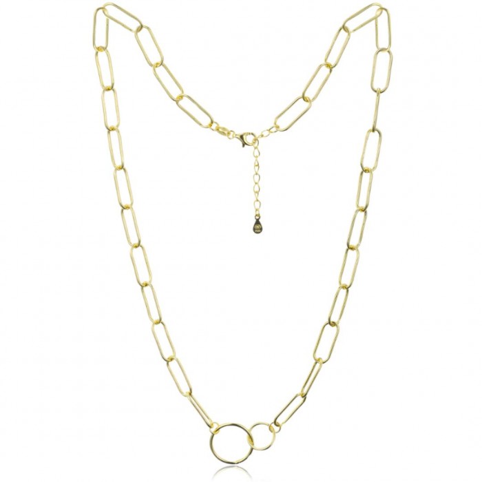 Motyw naszyjnika jest minimalistyczny i zachwyca swoją subtelnością. Ruchomy design i dwa przeplatające się kółka dodają lekkości i elegancji.
