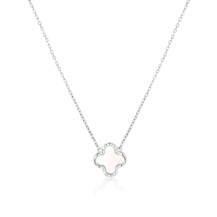 Ta wyjątkowa srebrna bransoletka to harmonijne połączenie klasycznej elegancji z nowoczesnym designem, idealne dla kobiet ceniących subtelne, a jednocześnie efektowne dodatki. Misternie wykonane zawieszki w kształcie czterolistnej koniczyny, symbolizującej szczęście i pomyślność, dodają jej niezwykłego uroku. Każda koniczynka została ozdobiona połyskującą masą perłową, co nadaje biżuterii wyjątkowej delikatności i blasku.