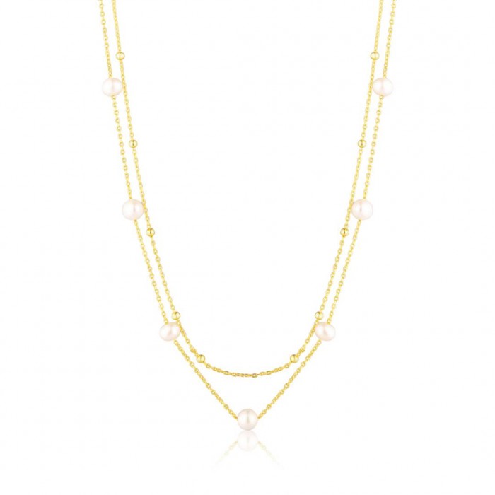 Bransoletka srebrna zdobiona srebrnymi kuleczkami i drobnymi perłami idealnie sprawdzi się w eleganckich kreacjach i nie tylko. Srebro pokryte jest warstwą 14-karatowego złota, co sprawia, że produkt jest bardziej odporny na czynniki atmosferyczne i mechaniczne. Delikatne łańcuszki typu ankier tworzą wyrafinowaną kompozycję, która pięknie układa się na nadgarstku, podkreślając wyjątkowy styl właścicielki. Starannie wyselekcjonowane, białe perły (różnej wielkości - mniejsze naprzemiennie umieszczone z większymi) dodają całości luksusowego charakteru, czyniąc biżuterię niezwykle elegancką, a zarazem uniwersalną – na co dzień i od święta