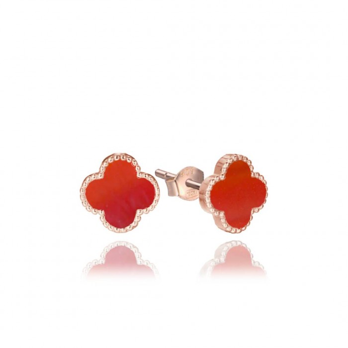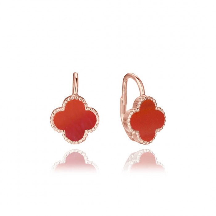 Bransoletka srebrna pr. 925 pozłacana na różowo z zawieszkami o kształcie koniczyny, zdobionymi agatem i onyksem.