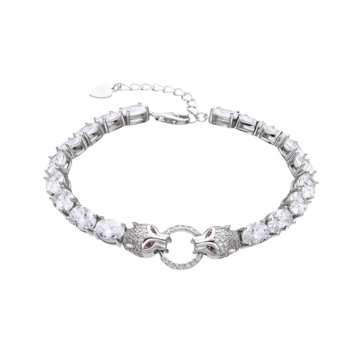 Bransoletka srebrna z dużymi cyrkoniami - dwie pantery