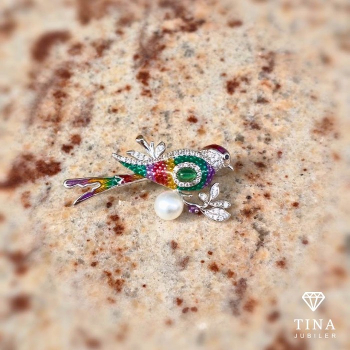 Broszka wykonana ze srebra próby 925, przedstawiająca kolorowego ptaka. Zdobiona różnokolorowymi cyrkoniami, które dodają jej blasku i wyrazistości, oraz białą naturalną perłą, która podkreśla jej elegancję. Idealna jako wyjątkowy dodatek do każdej stylizacji, nadaje się na różne okazje, od codziennych wyjść po bardziej formalne wydarzenia.