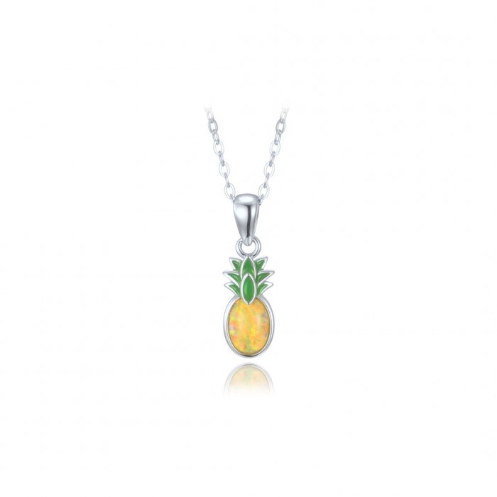 Odkryj oryginalne kolczyki wykonane ze srebra próby 925, pokrytego ochronną warstwą rodu, zdobione motywem ananasa z intensywnym, żółtym opalem. Unikatowy design nawiązuje do egzotycznych klimatów, łącząc słoneczny blask żółtego opalu z soczystą zielenią liści, co sprawia, że biżuteria przyciąga spojrzenia i podkreśla indywidualny styl.
