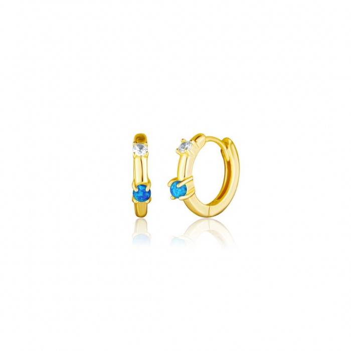 Odkryj elegancję i luksusowy blask kolczyków srebrnych pr. 925, pozłacanych, z opalem i cyrkonią. Te wyjątkowe kolczyki zostały wykonane z najwyższej jakości srebra próby 925, co zapewnia ich trwałość oraz odporność na codzienne użytkowanie. Powierzchnia kolczyków jest pokryta warstwą pozłacania, co nadaje im ciepłego, złotego blasku oraz wyjątkowego wyglądu. Opal, umieszczony w dolnej części kolczyka, charakteryzuje się pięknym, niebieskim odcieniem, który pięknie kontrastuje z błyszczącą cyrkonią umieszczoną na górze.