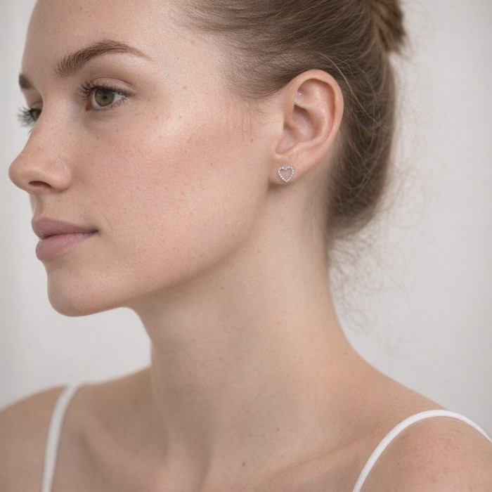 Srebrne kolczyki w kształcie konturowych, skręcanych serduszek to minimalistyczna biżuteria idealna na co dzień i na prezent. Wykonane są ze srebra próby 925 pokrytego ochronną warstwą rodu, co zwiększa trwałość i zapewnia lustrzany połysk odporny na ciemnienie. Delikatna, skręcana linia serca subtelnie podkreśla płatek ucha, a praktyczne zapięcie na sztyft gwarantuje wygodne i pewne noszenie przez cały dzień.