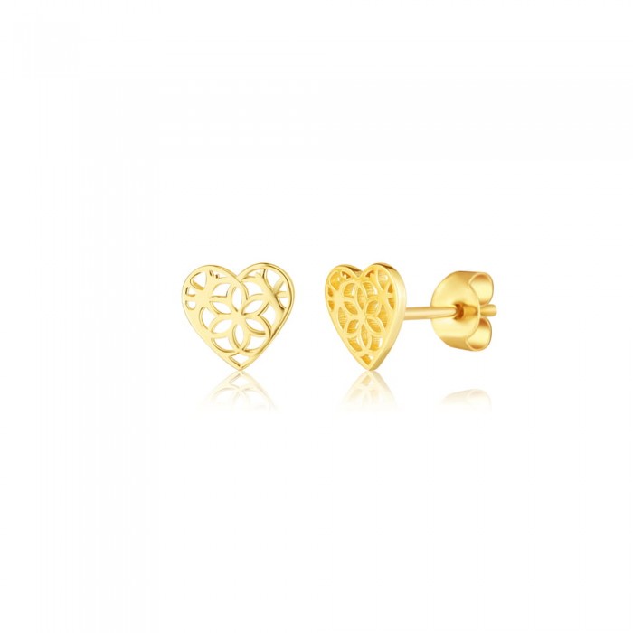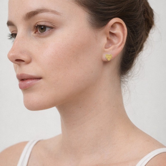 Kolczyki srebrne pozłacane w kształcie ażurowych serduszek z kwiatowym motywem to delikatna, kobieca biżuteria idealna na co dzień i na specjalne okazje. Wykonane są ze srebra próby 925 pokrytego 14‑karatową warstwą złota, co nadaje im ciepły, złoty blask i podkreśla elegancki charakter modelu. Ażurowy wzór dodaje lekkości, a klasyczna forma serca sprawia, że kolczyki świetnie sprawdzą się jako prezent wyrażający uczucia. Zakręcane sztyfty zapewniają wygodne, pewne zapięcie na cały dzień, dzięki czemu kolczyki są praktyczne w codziennym noszeniu.