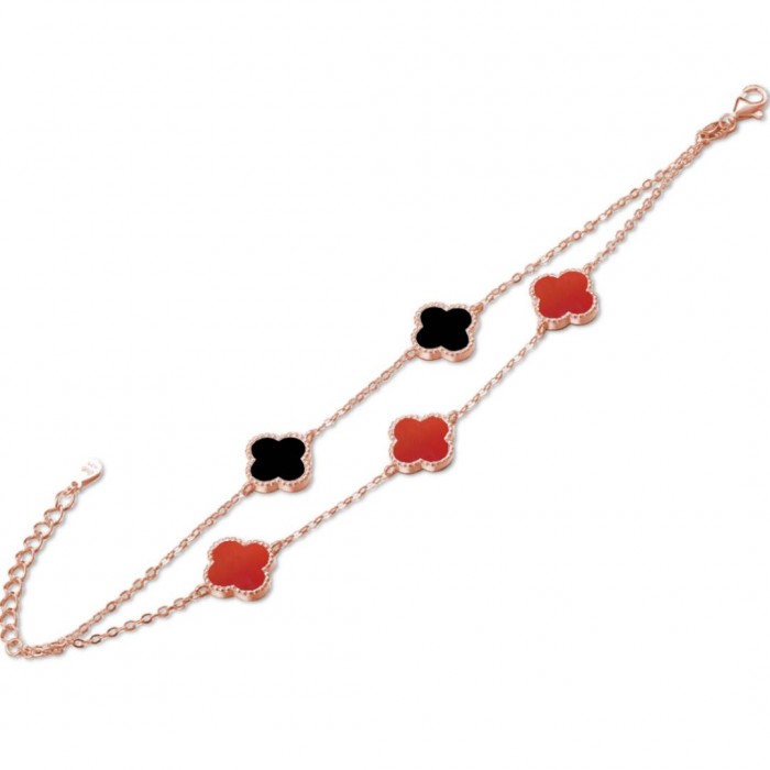Kolczyki srebrne pozłacane na różowo z agatem - koniczyna