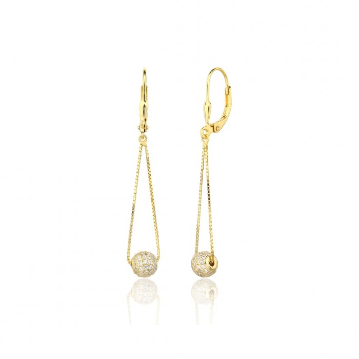 Kolczyki srebrne pozłacane - wiszące kulki na łańcuszkach