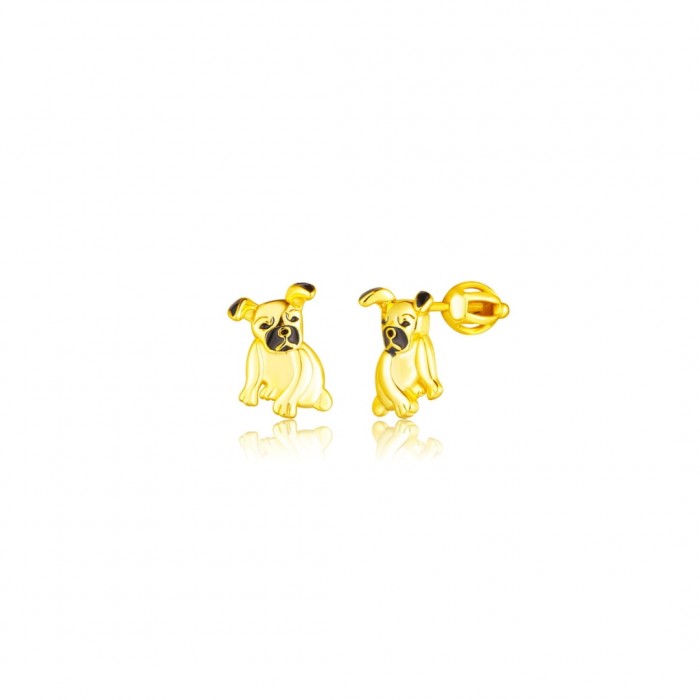 Srebrne zakręcane kolczyki w kształcie pozłacanych buldogów francuskich to idealna biżuteria dla miłośniczek tej rasy, które chcą dodać swoim stylizacjom odrobinę humoru i złocistego blasku. Starannie odwzorowana sylwetka pieska z czarnymi detalami pyszczka i uszu tworzy efekt miniaturowych, emaliowanych buldożków siedzących przy uchu, dzięki czemu kolczyki świetnie prezentują się zarówno solo, jak i w zestawie z inną złotą biżuterią.
