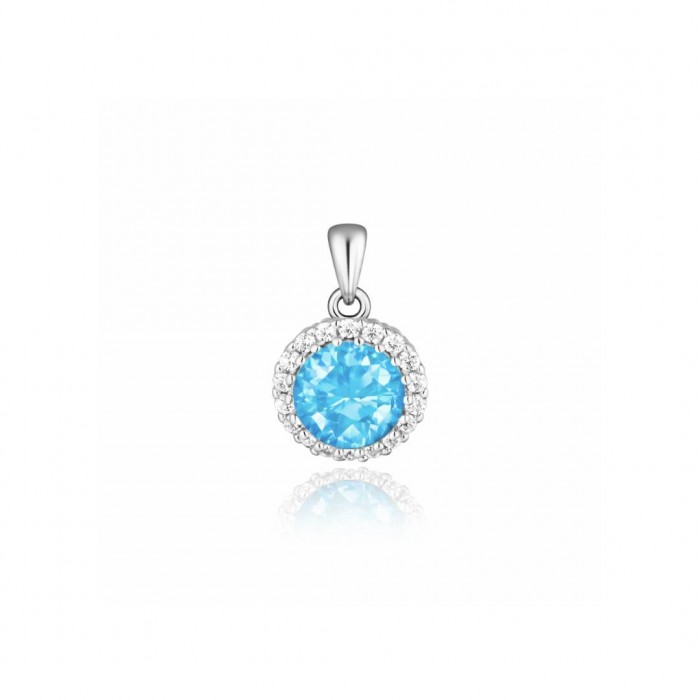 Te wyjątkowe kolczyki srebrne łączą w sobie elegancję i efektowny design. Centralnym punktem biżuterii są duże, lazurowe cyrkonie, które olśniewają swoim blaskiem. Dodatkowo, rząd drobniejszych, misternie oprawionych cyrkonii otacza centralny kamień, tworząc niezwykle harmonijny i luksusowy efekt.