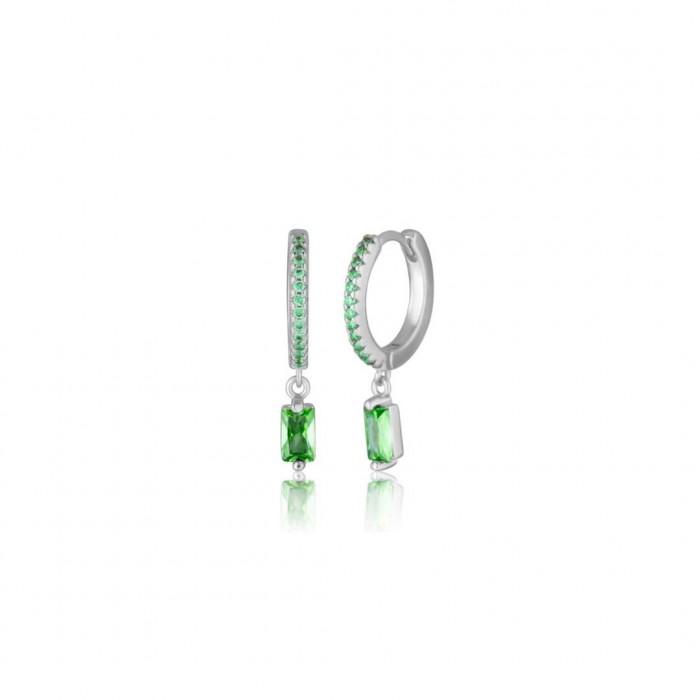 Postaw na blask i oryginalność! Te wyjątkowe, wiszące kolczyki wykonane z rodowanego srebra próby 925 to propozycja dla kobiet, które cenią sobie połączenie klasycznej formy z modnym akcentem kolorystycznym. Centralnym punktem są zielone cyrkonie o efektownym, prostokątnym szlifie – ich intensywna barwa przyciąga spojrzenia, subtelnie rozświetlając twarz. Całość dopełniają drobne, lśniące cyrkonie, które zdobią linię kolczyków, nadając im wyjątkowego, wieczorowego charakteru.