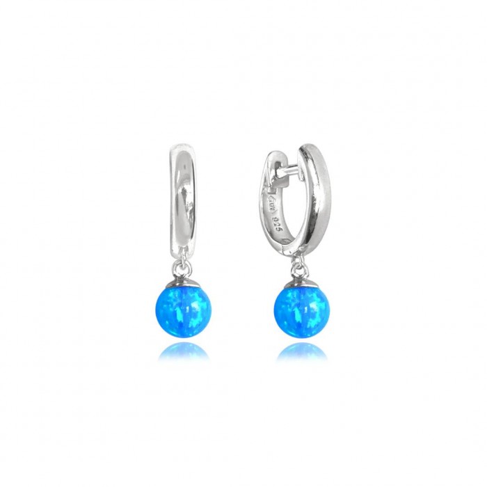 Naszyjnik srebrny z drobną kuleczką wykonaną z syntetycznego opalu (opalitu).