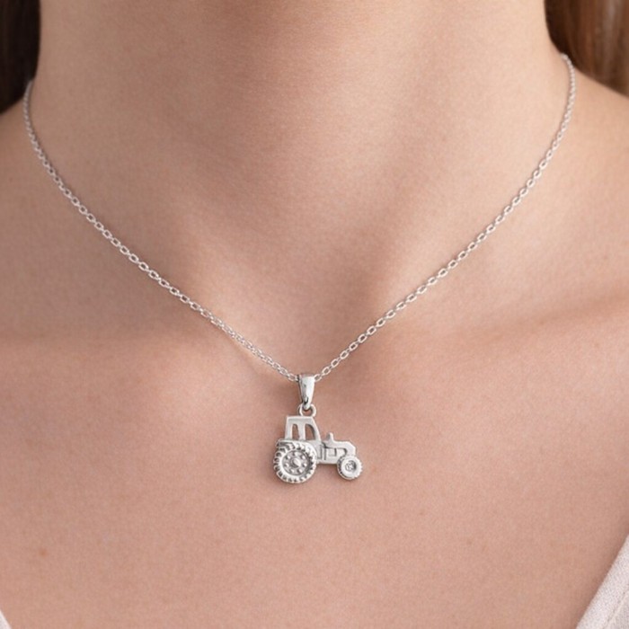 Naszyjnik ze srebra pr. 925 z zawieszką przedstawiającą traktor to niezwykły i oryginalny dodatek, który podkreśli Twój styl i zainteresowania. Zawieszka ma kształt traktora, który jest symbolem siły, pracy i wytrwałości. Naszyjnik jest wykonany z wysokiej jakości srebra próby 925, które jest odporne na zarysowania i utratę połysku. Naszyjnik ma długość 45 cm i zapinany jest na karabińczyk. To idealny prezent dla miłośników rolnictwa, maszyn i techniki.