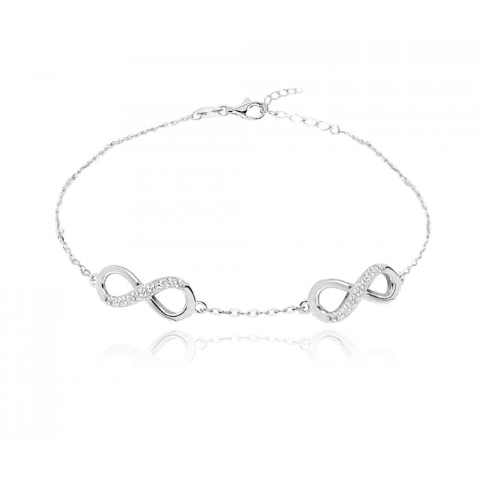 Srebrny naszyjnik z symbolem nieskończoności doskonale oddaje aktualne trendy. Połyskujące cyrkonie sprawiają, że jest to oryginalny dodatek do codziennego noszenia. Naszyjnik wykonany z rodowanego srebra pr. 925. Dzięki zastosowaniu wysokiej jakości materiałów zachowują one długotrwały kolor i połysk.
