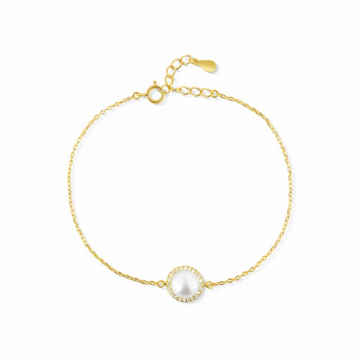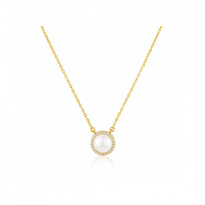 Centralnym punktem naszyjnika jest piękna, naturalna perła, umieszczona w samym sercu okrągłej zawieszki. Została ona otoczona misternym, świetlistym pierścieniem z drobnych, precyzyjnie osadzonych cyrkonii, które w niesamowity sposób odbijają światło, dodając całości niezwykłego blasku i luksusowego wykończenia. Zawieszka płynnie łączy się z solidnym, a jednocześnie bardzo subtelnym łańcuszkiem o sprawdzonym splocie typu ankier. Jego długość wynosząca 45 cm sprawia, że idealnie układa się na dekolcie.