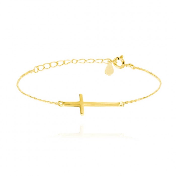 Drobny łańcuszkowy naszyjnik z poprzecznie ułożonym krzyżem. Wykonany z pozłacanego srebra.