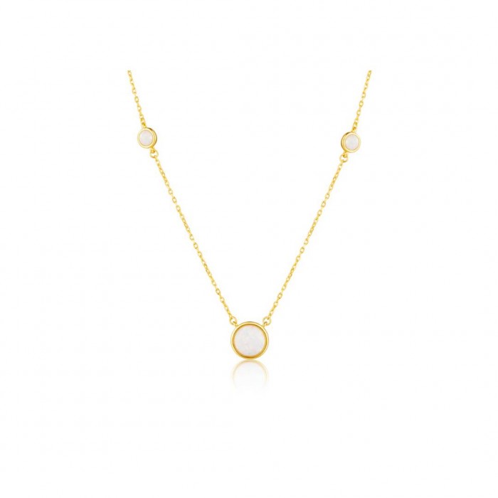Pozwól sobie na biżuterię, która rozświetli Twój dzień delikatną aurą tajemniczości! Ten srebrny pozłacany naszyjnik zachwyca minimalistycznym designem i niepowtarzalnym urokiem trzech zawieszek z białymi opalami syntetycznymi (opalitami). Ich łagodna barwa pięknie opalizuje w świetle, tworząc subtelny, perłowy efekt – za każdym razem, gdy ruch wprawia naszyjnik w taniec, pojawia się fascynujący blask, który hipnotyzuje i przyciąga spojrzenia.