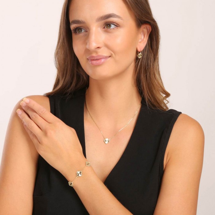 Ten wyjątkowy naszyjnik łączy w sobie subtelną elegancję z ponadczasowym motywem koniczyny, symbolizującym szczęście i powodzenie. Wykonany z najwyższej jakości pozłacanego srebra próby 925.