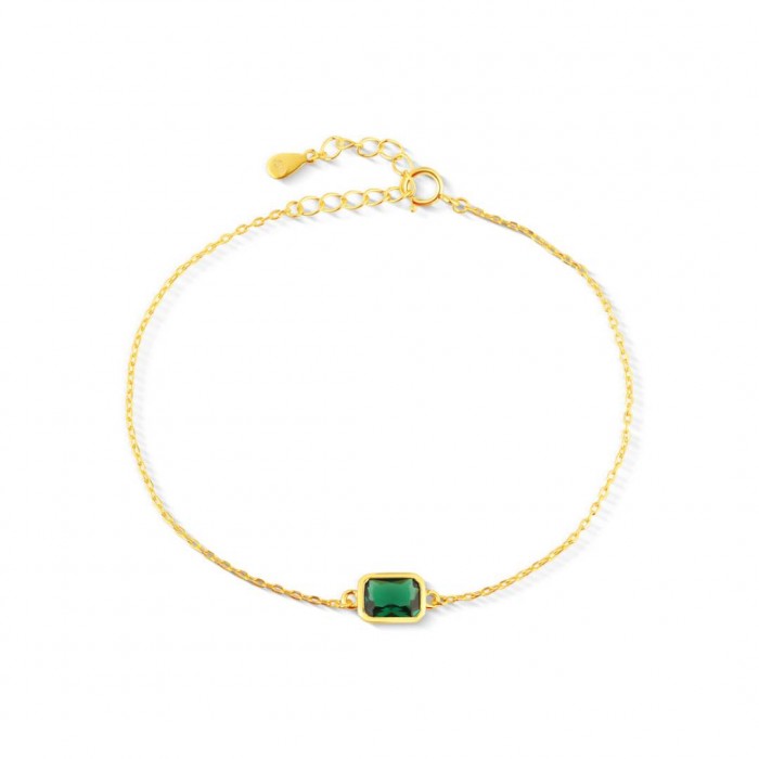 Wyróżnij się stylem dzięki temu wyjątkowemu, pozłacanemu naszyjnikowi ze srebra próby 925. Subtelny łańcuszek, regulowany w zakresie od 40 do 45 cm, zakończony jest przykuwającą wzrok prostokątną zawieszką w kolorze głębokiej zieleni, która hipnotyzuje spojrzenia i nadaje całości szlachetny, ekskluzywny charakter. Drobny ozdobny akcent w postaci delikatnej białej kuleczki dodatkowo podkreśla oryginalność projektu.