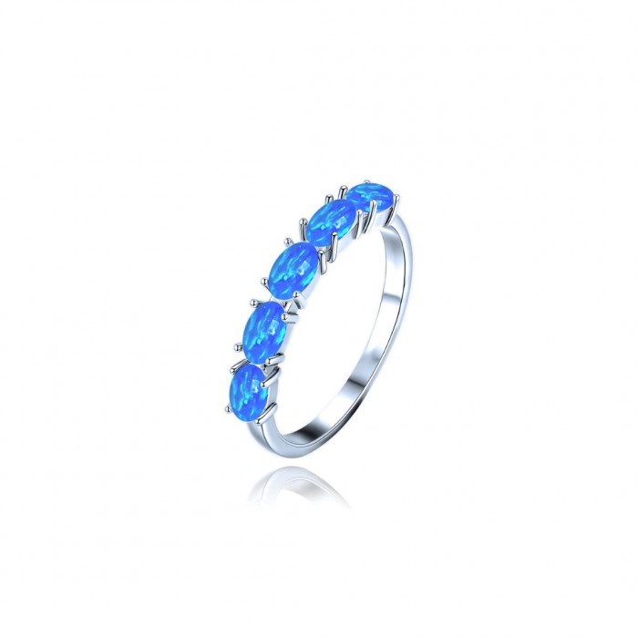 Srebrny naszyjnik z niebieskim opalitem to subtelny hołd dla delikatnej kobiecości, gdzie blask syntetycznego opalu tańczy w świetle jak morska piana. Owalny kamień osadzony w minimalistycznej oprawie emanuje tajemniczą głębią i iryzacją, idealnie podkreślając dekolt w codziennych i wieczorowych stylizacjach.