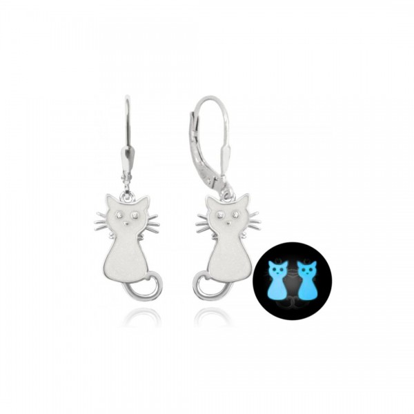 Łańcuszek srebrny z zawieszką - białym kotem z fluorescencyjną powłoką. Występuje w naszej kolekcji w komplecie także z kolczykami.