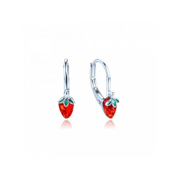 Ten uroczy naszyjnik o długości 44 cm wykonany jest z delikatnego srebra próby 925. Centralnym elementem jest zawieszka w kształcie truskawki, pokryta emalią i ozdobiona syntetycznym opalem, co dodaje biżuterii żywych kolorów i wyjątkowego charakteru.