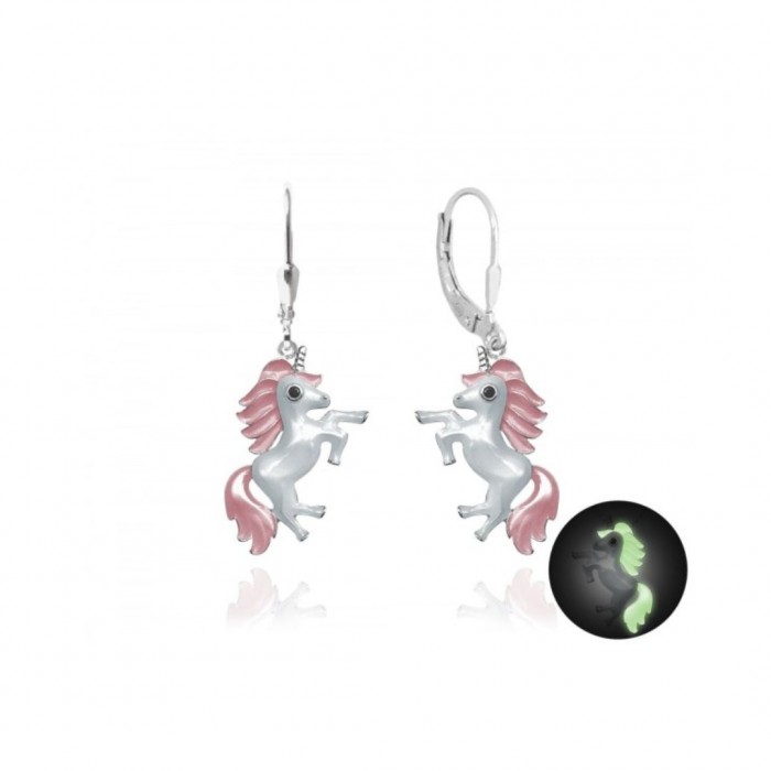 Naszyjnik srebrny rodowany z jednorożcem o różowej grzywie. Zawieszka świeci w ciemności. Twoja pociecha będzie zachwycona!