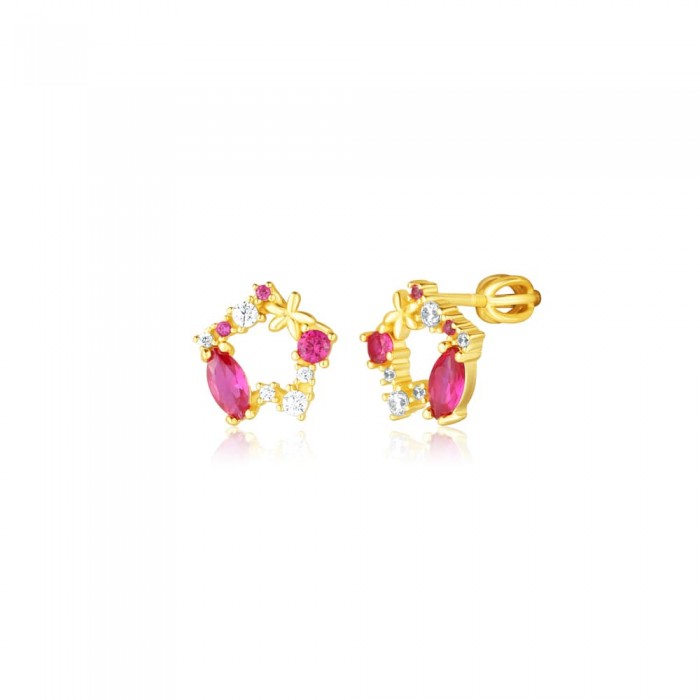 Srebrny naszyjnik z okrągłą zawieszką wysadzaną różowymi i białymi kamieniami to biżuteria, która łączy romantyczny charakter z nowoczesną formą. Delikatny łańcuszek z pozłacanego srebra próby 925 miękko układa się na dekolcie, a misternie skomponowany, złocony okrąg z różowymi akcentami i lśniącymi cyrkoniami tworzy efekt świetlistego, kobiecego detalу.