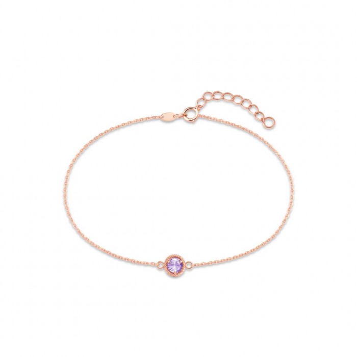 Ten elegancki naszyjnik z najwyższej jakości różowego złota próby 585 to biżuteria, która subtelnie podkreśla szyję i dodaje klasy każdej stylizacji. Delikatny, złoty łańcuszek rose gold pięknie układa się na dekolcie, tworząc lekką, kobiecą oprawę dla błyszczącej zawieszki. Centralnym punktem jest fioletowa cyrkonia w ozdobnej oprawie, która mieni się przy każdym ruchu, przyciągając wzrok dyskretnym, ale wyraźnym blaskiem. To idealny wybór na prezent dla kogoś wyjątkowego lub elegancki dodatek, którym możesz sprawić przyjemność samej sobie.