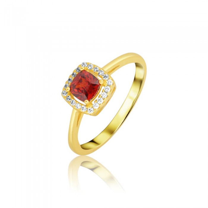 Pierścionek srebrny 925 pozłacany z czerwoną kwadratową cyrkonią to biżuteria, która przyciąga uwagę intensywnym kolorem oraz luksusowym wykończeniem. Model wykonany jest z wysokiej jakości srebra próby 925 pokrytego 14-karatową warstwą złota, co zapewnia szlachetny połysk i trwałość. Centralny element stanowi efektowna czerwona cyrkonia oszlifowana w kwadrat, otoczona błyszczącymi, przezroczystymi cyrkoniami, które podkreślają głębię koloru i elegancję całości. Ten pierścionek to idealny wybór dla kobiet ceniących wyrazistą i prestiżową biżuterię – doskonale sprawdzi się zarówno na co dzień, jak i na wyjątkowe okazje.
