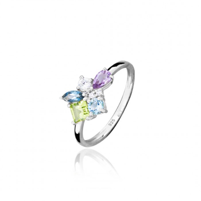 Wyraź swoją radość życia dzięki fantazyjnemu pierścionkowi srebrnemu, zdobionemu wielokolorowymi cyrkoniami. Każdy z kamieni – w odcieniach fioletu, błękitu, limonki i czystej bieli – tworzy oryginalny, kwiatowy układ przyciągający spojrzenia oraz rozświetlający dłonie feerią barw. Wykonany ze srebra próby 925, pokryty warstwą rodu dla trwałości i połysku, ten efektowny model już od pierwszego założenia wprowadza w świat niebanalnych kompozycji. Idealny dla osób, które kochają kolorowe akcenty i pozytywną energię biżuterii — wspaniale sprawdzi się zarówno w codziennych, jak i odświętnych zestawach, podkreślając wyjątkowy styl właścicielki. Starannie osadzone kamienie zapewniają olśniewający efekt i przyciągają uwagę swoim blaskiem oraz radosną aurą.