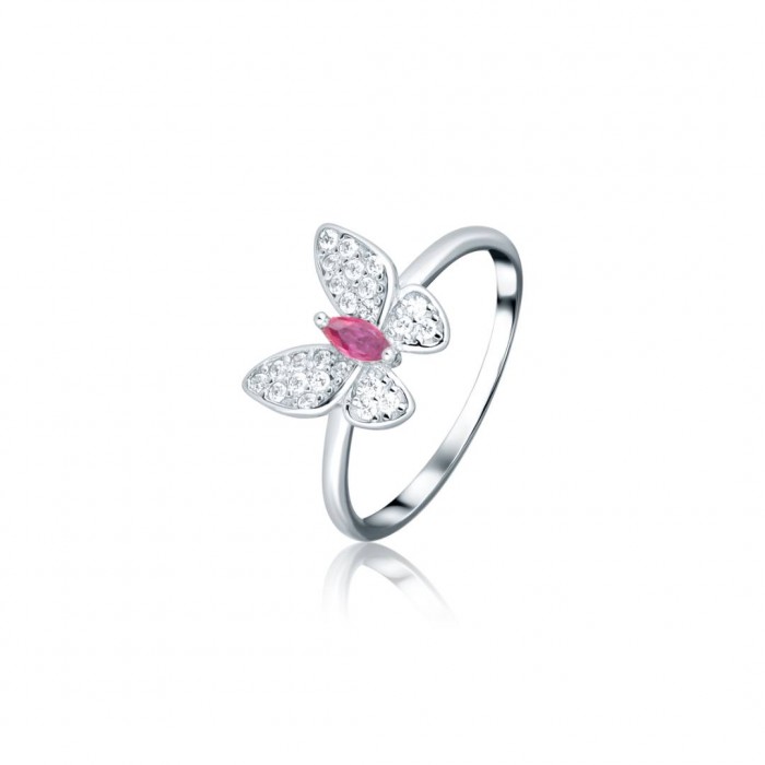 Pierścionek srebrny 925 w kształcie fioletowego motyla to biżuteria, która zachwyca lekkością i subtelnym blaskiem. Wykonany z wysokiej jakości srebra próby 925 pokrytego ochronną warstwą rodu, pierścionek prezentuje się niezwykle elegancko i jest odporny na matowienie. Centralnym motywem jest finezyjny motyl – jego skrzydła wysadzane są lśniącymi, białymi cyrkoniami, które pięknie odbijają światło, a tułów stanowi różowa cyrkonia o szlifie markizy, nadająca całości wyjątkowego uroku. Delikatna obrączka sprawia, że pierścionek doskonale układa się na palcu i podkreśla kobiecą dłoń. To idealny wybór dla osób ceniących biżuterię inspirowaną naturą oraz romantyczny, dziewczęcy styl. Pierścionek z motylem świetnie sprawdzi się zarówno na co dzień, jak i jako wyjątkowy akcent do eleganckich stylizacji, a także jako prezent dla bliskiej osoby, która lubi niebanalne dodatki.