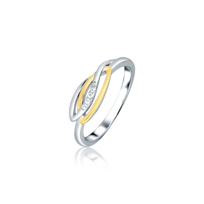 Pierścionek, który łączy w sobie szlachetność kruszcu i kreatywną nowoczesność, przykuwa wzrok oryginalną konstrukcją. Harmonijny duet rodowanego i pozłacanego srebra próby 925 tworzy subtelny kontrast, podkreślając wyjątkowy charakter biżuterii. Delikatne, białe cyrkonie, osadzone w centralnej części pierścionka, dodają całości ekskluzywnego blasku i świetlistej elegancji. Ten model doskonale sprawdza się zarówno w codziennych stylizacjach, jak i na wyjątkowe okazje, stanowiąc zjawiskowy akcent dla osób ceniących klasę, lekkość i luksus w nowoczesnej odsłonie.