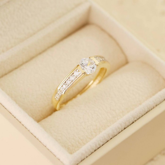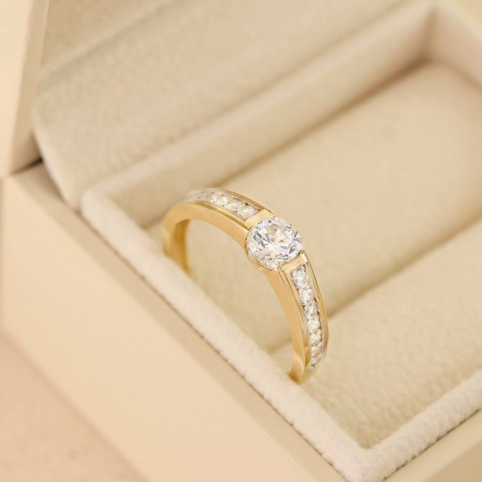 Poznaj wyjątkowy pierścionek z żółtego złota próby 585, który zachwyca klasyczną formą i wyjątkowym blaskiem. Jego główną ozdobą jest duże, centralne oczko, efektownie osadzone między dwoma rzędami lśniących cyrkonii po obu stronach obrączki. Starannie wyprofilowana szyna doskonale podkreśla elegancję biżuterii, czyniąc ją wszechstronnym wyborem – idealnym zarówno na zaręczyny i rocznicę, jak i jako symbol miłości, który ozdobi każdą codzienną lub wyjściową stylizację. Wysoka jakość wykonania oraz uniwersalny styl pierścionka sprawiają, że jest to doskonały prezent dla kobiety ceniącej klasykę i subtelny blask.