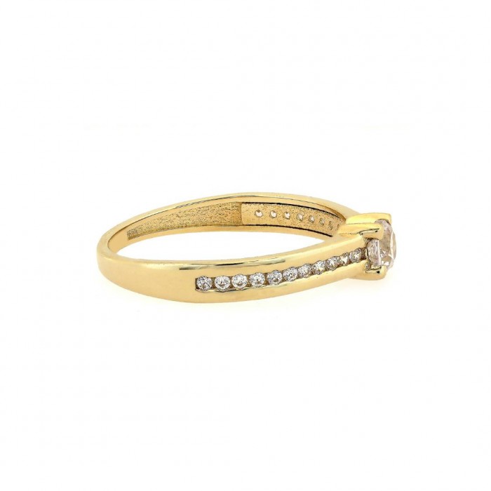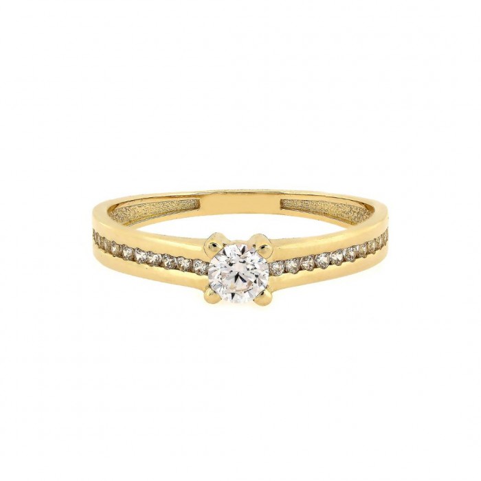 Zachwyć się ponadczasową elegancją złotego pierścionka próby 585, którego subtelny blask rozświetli każdą dłoń. Jego główną ozdobę stanowi okazała cyrkonia umieszczona w efektownej, czteroramiennej koronie, wokół której z obu stron szyny biegną rzędy drobnych, połyskujących cyrkonii. Starannie wyprofilowana obrączka zapewnia komfort noszenia, a klasyczna linia sprawia, że pierścionek jest wszechstronny — idealny zarówno na zaręczyny i rocznice, jak i jako codzienny symbol miłości i wyrafinowanego gustu. Szlachetny, złoty połysk i perfekcyjne wykończenie to gwarancja, że biżuteria będzie cieszyć przez wiele lat.