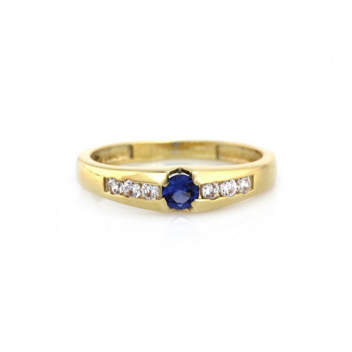 Pierścionek złoty pr. 375 granatowa cyrkonia z sześcioma małymi