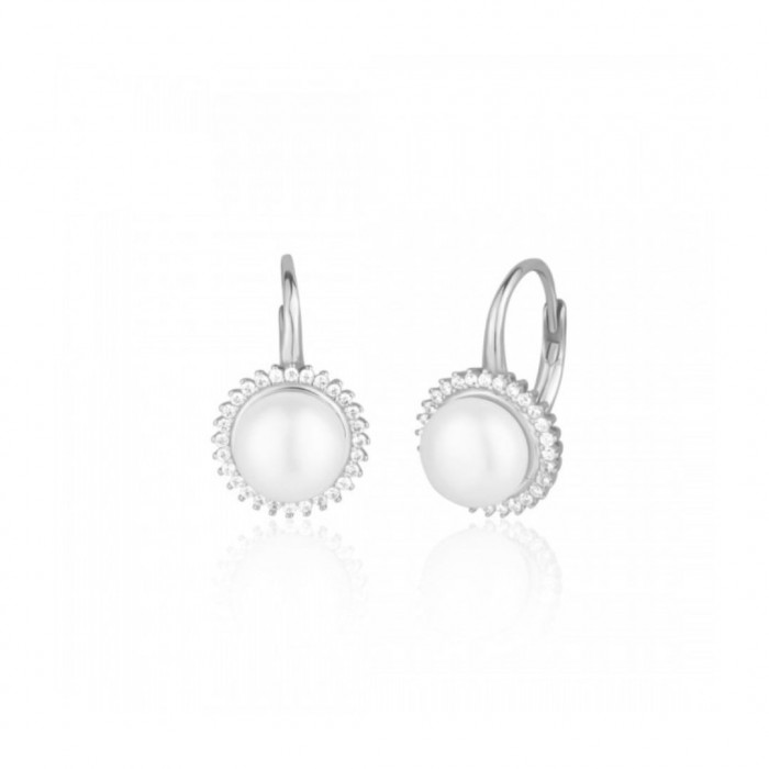 Srebrna zawieszka z perłą słodkowodną otoczoną cyrkoniami
