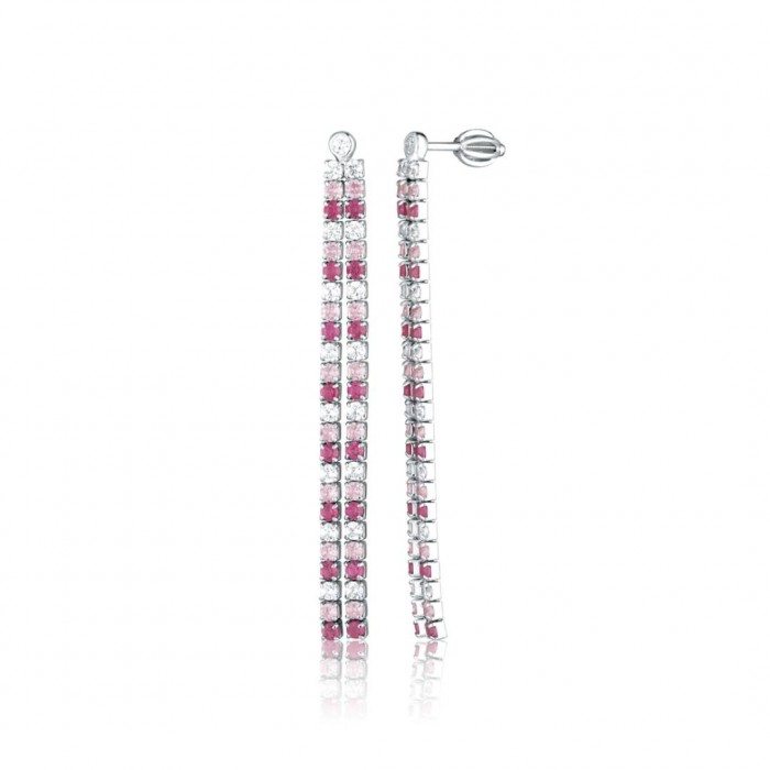 Naszyjnik kolia o splocie typu kostka z białymi i różowymi cyrkoniami to biżuteria pełna romantycznego blasku. Kontrast jasnych i różowych kamieni tworzy efekt subtelnej gry świateł, która pięknie podkreśla linię dekoltu i dodaje stylizacjom wyjątkowego charakteru. Rodowane srebro próby 925 nadaje całości szlachetnego, chłodnego połysku oraz chroni powierzchnię przed ciemnieniem, dzięki czemu naszyjnik przez długi czas wygląda jak nowy. Regulowana długość pozwala dopasować kolię zarówno do eleganckiej sukni, jak i prostego topu, zmieniając każdą stylizację w szykowną, kobiecą odsłonę. To doskonały wybór dla kobiet, które kochają klasykę przełamaną nutą koloru i chcą, by biżuteria delikatnie, ale zdecydowanie przyciągała spojrzenia.