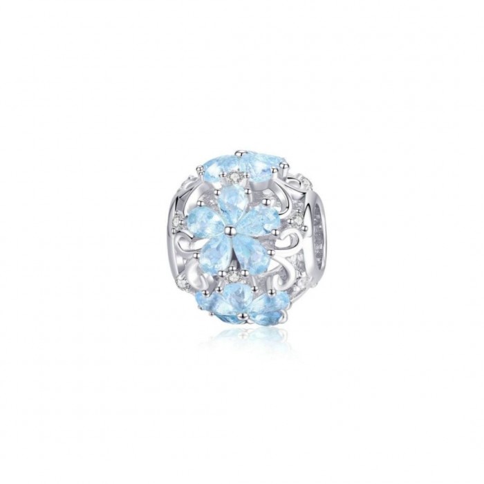 Wprowadź do swojej bransoletki świeży i subtelny akcent dzięki srebrnemu charmowi zdobionemu błękitnymi kwiatami! Ta wyjątkowa zawieszka zachwyca soczystymi, błękitnymi cyrkoniami o szlifie w kształcie płatków, które pięknie migoczą. Finezyjna, ażurowa konstrukcja sprawia, że dodatek jest lekki i pełen wdzięku — idealny do bransoletek modułowych najpopularniejszych marek. To fantastyczny pomysł na prezent, który wyrazi serdeczność, miłość i radość w wyjątkowym, grudniowym czasie, ale zachwyci także przez cały rok, jako talizman pozytywnej energii.