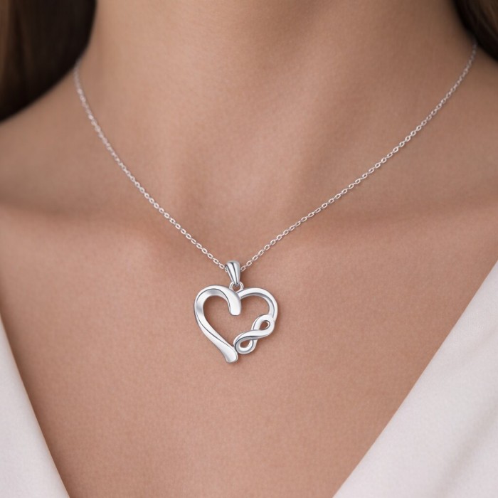 Ta wyjątkowa srebrna zawieszka stanowi kwintesencję elegancji połączonej z głęboką symboliką, idealnie wpisując się w gusta kobiet ceniących subtelne i znaczące dodatki. Projekt łączy w sobie dwa najsilniejsze symbole uczuć, czyli klasyczne, konturowe serce oraz znak nieskończoności, które zostały splecione w jedną, nierozerwalną formę. Taka kompozycja sprawia, że biżuteria ta jest doskonałą metaforą wiecznej miłości, przyjaźni i oddania, co czyni ją idealnym pomysłem na upominek dla ukochanej osoby, mamy czy przyjaciółki. Gładka powierzchnia wisiorka, pozbawiona kamieni, podkreśla nowoczesny i minimalistyczny charakter ozdoby, dzięki czemu pasuje ona zarówno do codziennych stylizacji, jak i bardziej formalnych strojów.