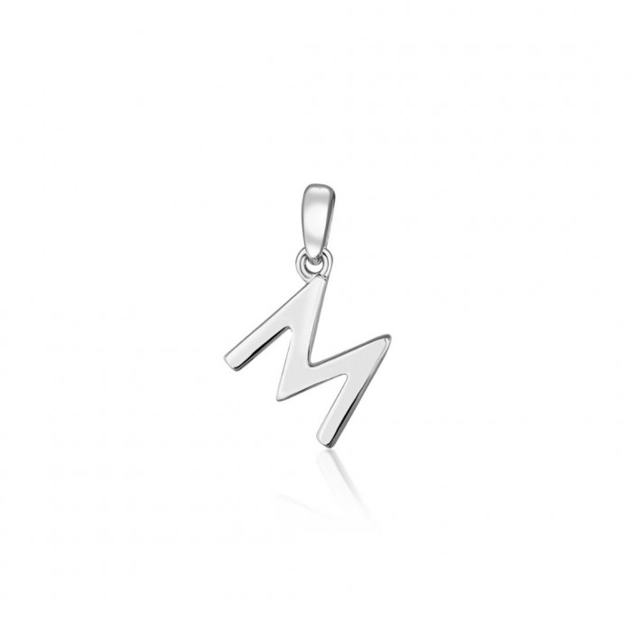 Ta subtelna zawieszka wykonana jest ze srebra próby 925. Literka "M" ma wysokość około 1,5 cm (z krawatką).
