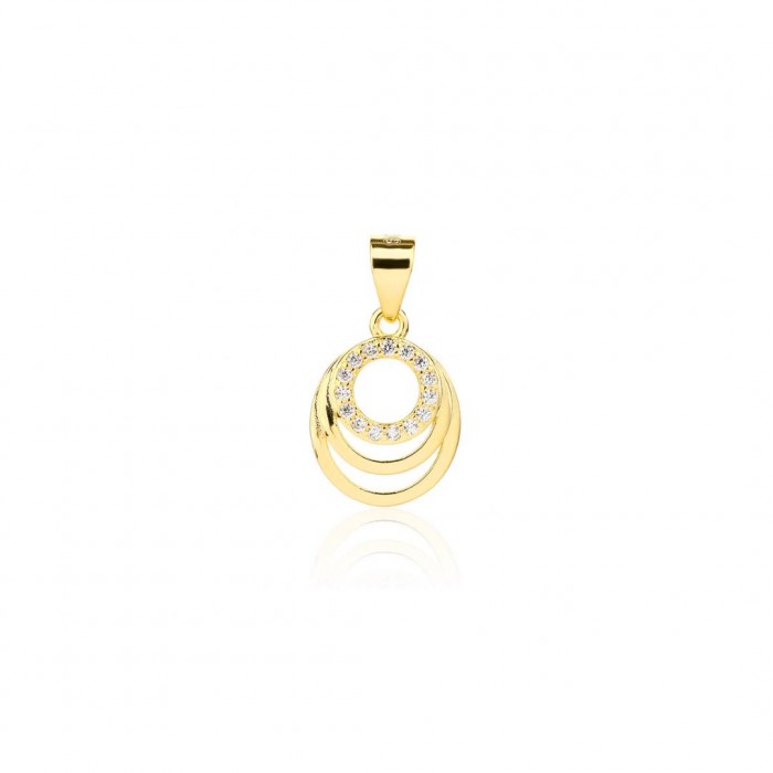 Srebrny komplet biżuterii pozłacany z okręgami wysadzanymi cyrkoniami to elegancki zestaw o nowoczesnym, geometrycznym charakterze. Delikatne, potrójne kółka z błyszczącym, cyrkoniowym pierścieniem pięknie odbijają światło, dodając stylizacjom subtelnego blasku i optycznie wysmuklając szyję.